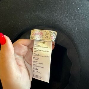 This wide brim Free People hat has hardly been used and is in NEW condition. It is black with the gold string details