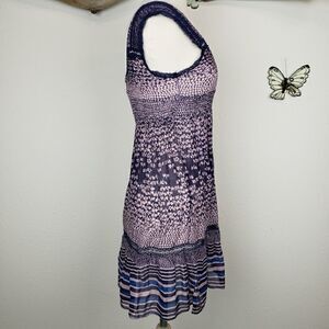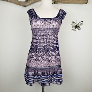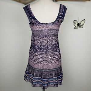 Would need to wear something underneath this boho sexy romantic mini dress with cap sleeves. Floral and striped hem.