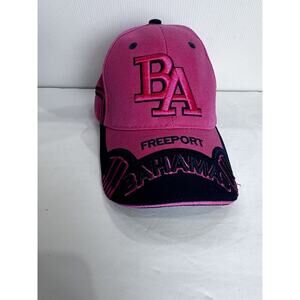 Freeport Bahamas Strapback Hat Black N Pink Embroidered Logo Adjustable