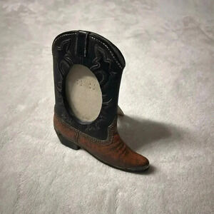 Freestanding Cowboy Boot Picture Frame, Small with Oval Photo Window