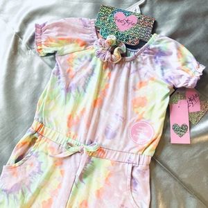 Freestyle 4T Tie Dye Jumpsuit Set Scrunchie NEW