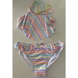 Freestyle Revolution Girls Tankini Swimsuit multicolor striped 2pc set Size 16