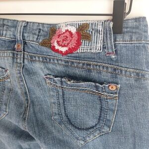 Freestyle Revolution Jeans, Size 7, design fraying at bottom of jeans, flowered design on right back top over the pocket. Pre-owned in great condition with no rips or stains.
