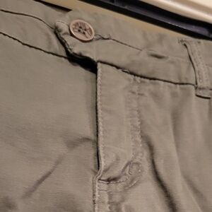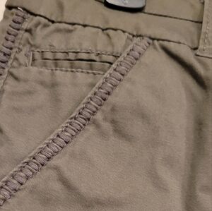 Freestyle Revolution olive green color shorts. 5 pockets, button and zipper closure, big belt loops on waistband and embroidery stitching down sides and around pockets. Size 11