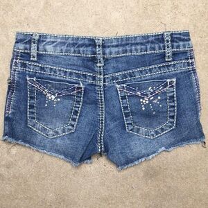 Girls denim shorts size 10 crystal button rhinestones decorated pockets in great condition