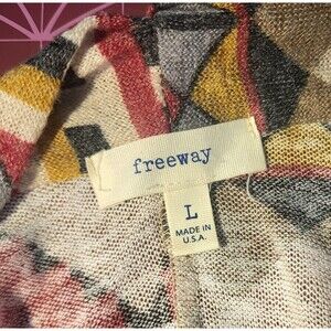 Soft and lightweight, with a loose fit this flyaway cardigan from Freeway is all you need to add the perfect touch of fall warmth to your outfit. It features a mute toned Aztec print, seam pockets, bat sleeves and removable tie. No flaws. Size L Length appx 27"