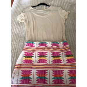 Freeway Beige Top Dress with Colorful Woven Skirt – Size M,