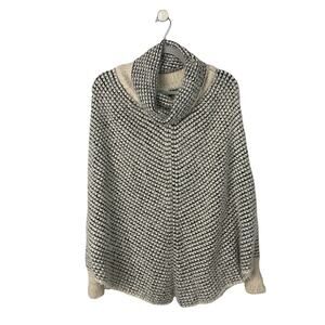 Freeway Black And White Cowl Neck Chunky Knit Poncho Sweater Womens Size Small