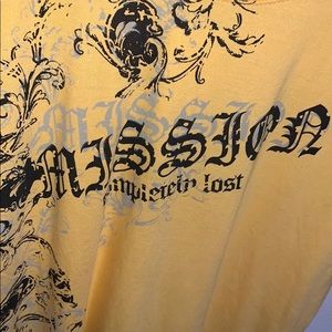 it says Mission completely lost on the shirt
