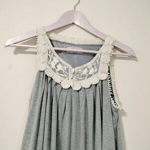Freeway Sz Medium Gray Sleeveless Tank Dress Crochet lace button Neckline Line