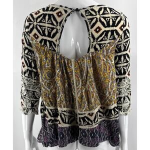 Freeway Top Size Size Medium Black Yellow Floral Boho Embroidered Blouse Womens