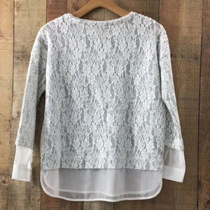 Freeway White Gray Lace Long Sleeve Layered Blouse