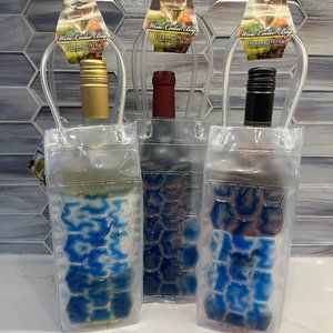 Freeze Beverage Tote / Ice Bucket To-Go / Wine Chill Bag / Clear & Blue - NWT