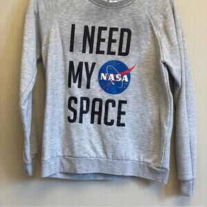 Details: long sleeve sweatshirt “I Need My NASA Space” grandmacore coastal grandma futuristic cozy crew neckline