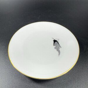 Freiberger Porzellan Round Dish Plate Unique Design Germany MCM Gold Edge Set 2