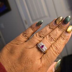 Freida Rothman nautical button ring. Sterling silver 14k gold plated and rhodium plated with cubic zirconia. Size 7