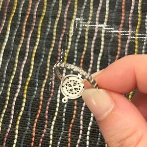 This stunning silver ring features sparkling crystal accents, perfect for adding a touch of elegance to any outfit. Feels to me like a size 7.