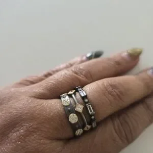 Three Freida Rothman stacking rings. Stones all the way around. Can be worn in different ways. Size 7.