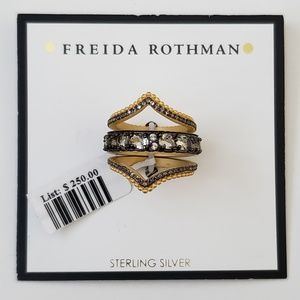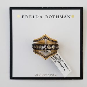 Freida Rothman Sterling Silver Crystal Gilded Stack Rings