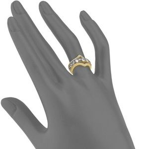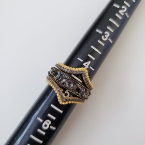 14K yellow gold and black rhodium plate sterling silver crystal gilded stack ring