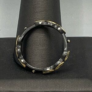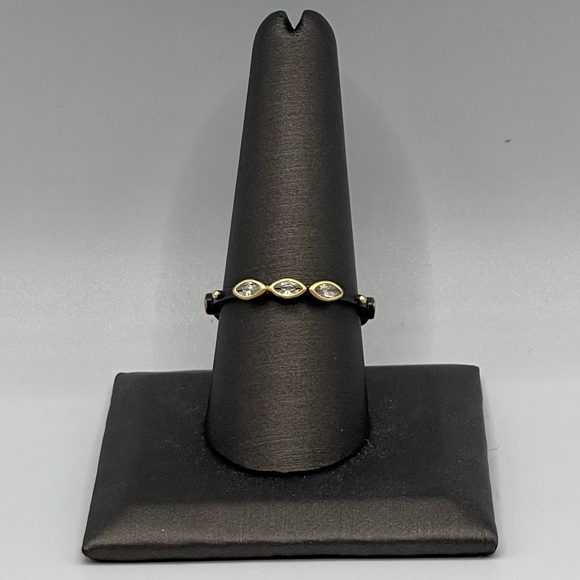 This Freida Rothman stacking ring features a stunning combination of gold and silver tones with CZ stones, perfect for any occasion.