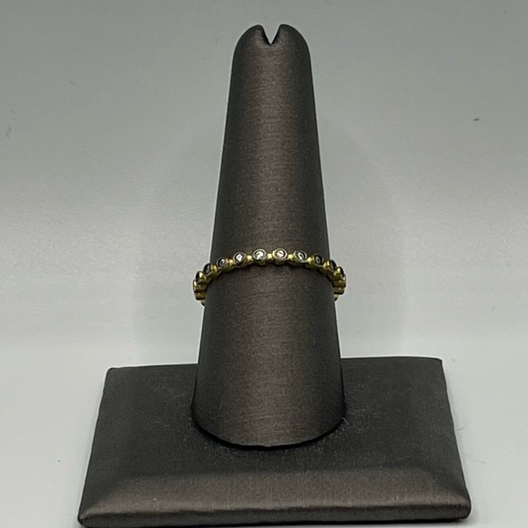 This Freida Rothman women's ring showcases a beautiful blend of gold with silver with tiny CZ stone accents, adding a touch of elegance, add this to your stack.