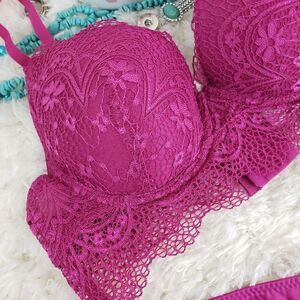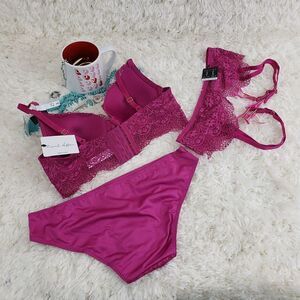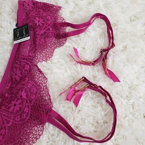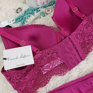 French Affair 36B Pink Lace Garter/Bikini M PushUp Criss Cross Styling …