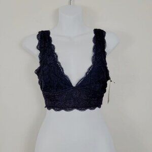 French Affair Black Lace Plunging Front Bralette Size Small NEW