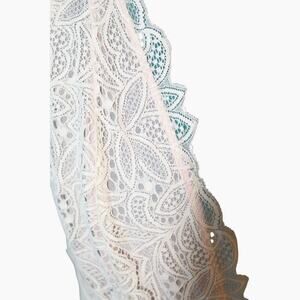 French Affair Ivory Lace Deep V Mesh Bodysuit Women’s M