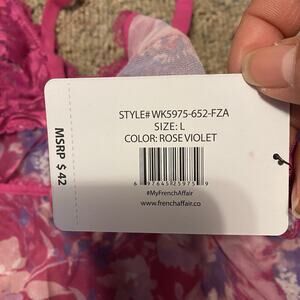 French Affair Purple Floral Babydoll Nightie & G-String Panty Lingerie Set Sz L