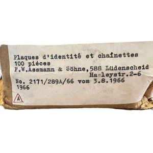French Army Issued Dog Tag & Chain Unused VTG 1960s Original 14" Chain 1.75" Tag