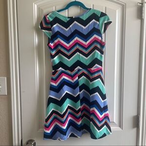 French Atmosphere Multicolor Short Sleeve Chevron Print Skater Dress; SZ L;BNWT