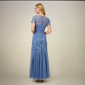 French Blue Maxi Beaded Gown with Crew Neck and Short Sleeves for Weddings