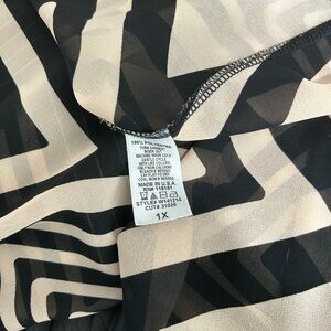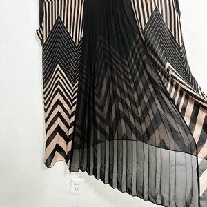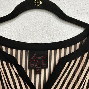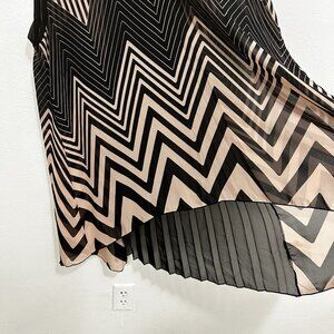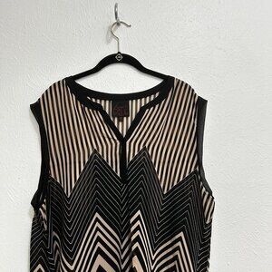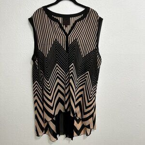 French Blue Sleeveless Tunic Top Chevron Striped Pleated Back Brown Beige Sz 1X