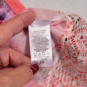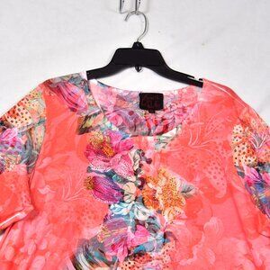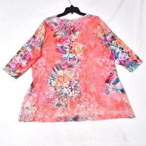 French Blue Women's Coral 3/4 Sleeve Floral Embellished Blouse Size 2X