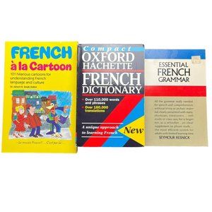 French Book Lot- Oxford Dictionary, Essential Grammar, Cartoons Language Culture
