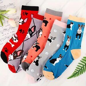 French Bulldog - Colorful -Women's 5 Pack -Crew Socks - OS - NWT