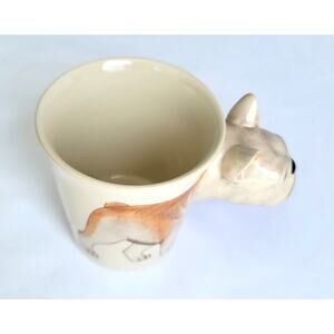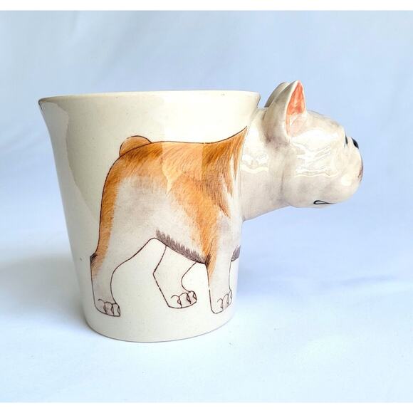 French Bulldog Dog White Coffee Mug Porcelain Hand Painted 3D Animal Shaped