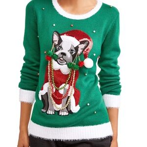 French Bulldog, Pug, dog sweater, Christmas Ugly Sweater, Embellished, Holiday sweater, plus size