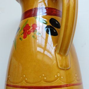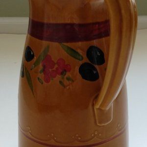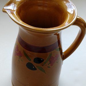Rare French Ceramic Pitcher With Painted Olives 10" Hi Made in Saint-Uze for William Sonoma