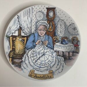 French Ceramique Decorative Plate NEM Plate “La Dentelliere” (The Lacemaker) 9"
