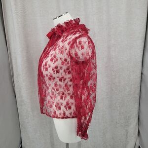 French Cherry Red See Through Lace Coquette Girl Long Sleeves Top Jacket