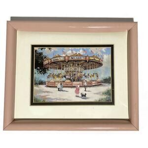 French City Scene and Children's Carousel Prints Framed Double Matted Lot of 2