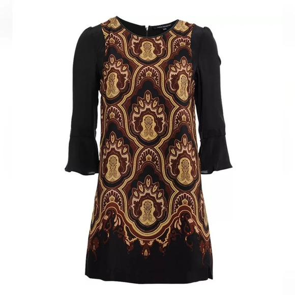 French Connection 100% Silk Sultan Print Mid Mod Sheath Dress Size 2