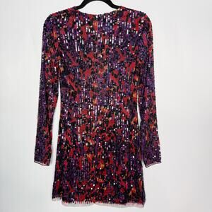 French Connection 4 Purple Red Black Inari Embellished Leopard Sequin Mini Dress