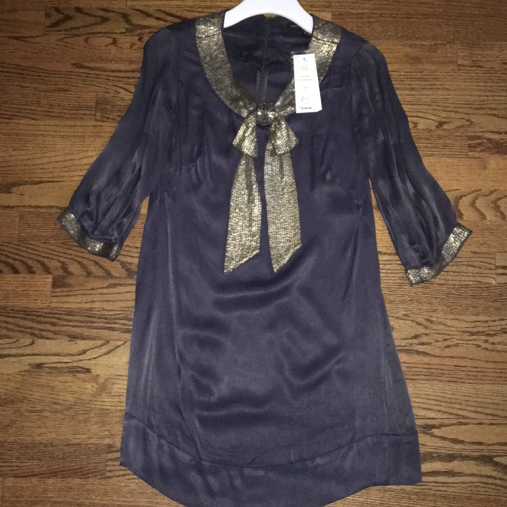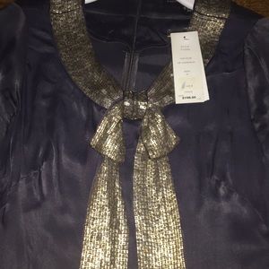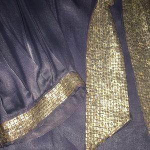 FC grey silk dress with amazing gold beaded details. The perfect cocktail, ladies night, or a date night dress.