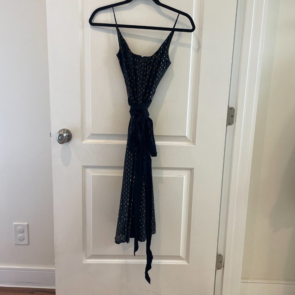 Black & Giold dress in great condition. 36" in length, size 2 with a tie.