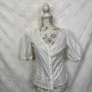 French Connection Armina Poplin Short Puff Sleeve Top NWT - missing top button