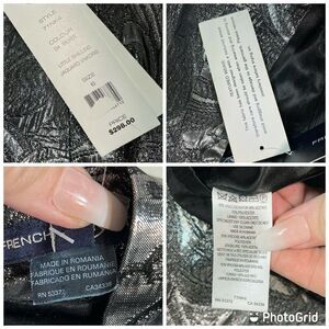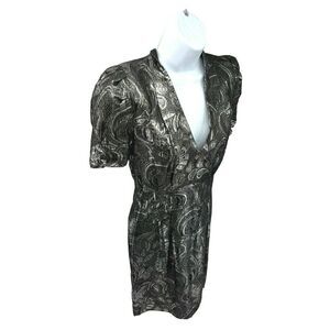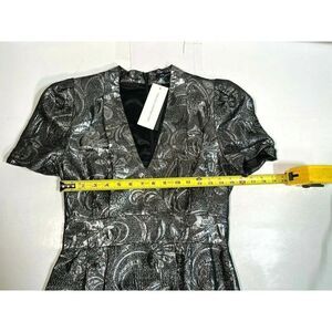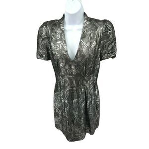 French Connection Women's size 6 Art Deco Metallic Dress Silver, Lined in black. New with tags. Measurements in photos. No rips, holes, or stains. Comes from smoke free environment.