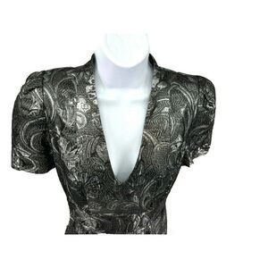 French Connection Art Deco Metallic Dress Silver Deep V Cocktail Party